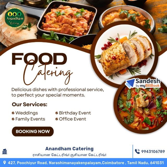 Anandham catering service for weddings, public functions and house specials has been providing excellent service and has earned the golden reputation, appreciation and recognition of our customers.